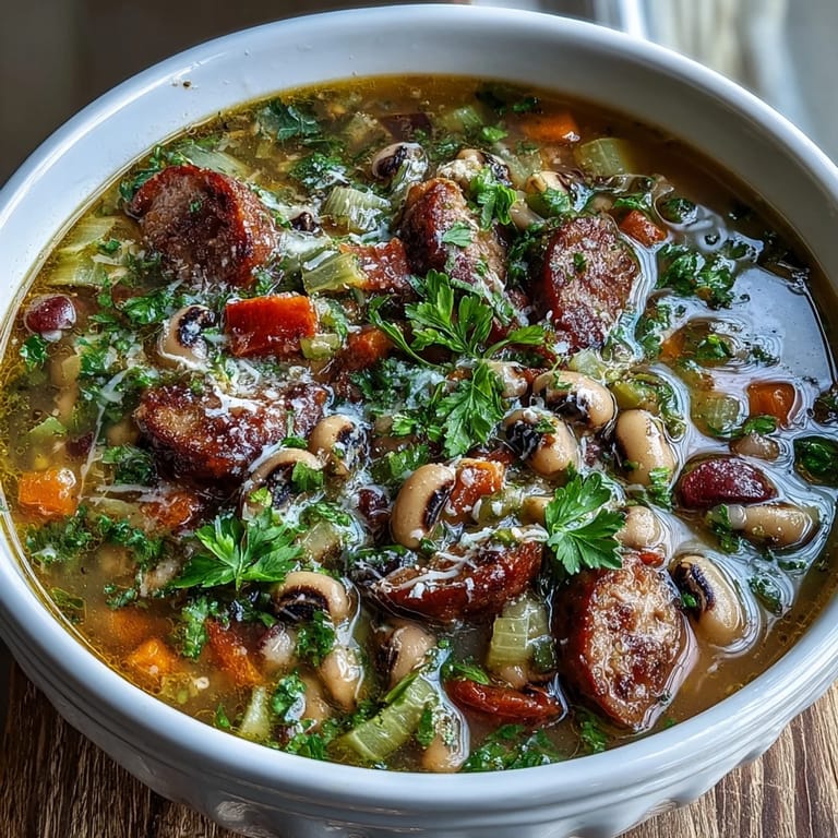 This isn't a soup that tries to be anything other than what it is: a warm, honest bowl that tastes like someone who knows their way around a kitchen made it just for you. The combination of black-eyed peas and sausage is traditional enough to feel trustworthy, but the fresh vegetables and proper seasoning keep it from tasting boring or heavy. Most importantly, it scales beautifully, so you can make a pot for two or double it for a crowd and it tastes equally good either way.