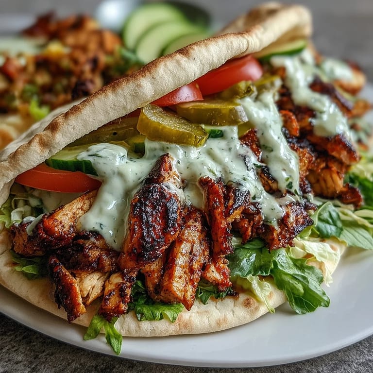 - Pile sliced chicken into warm pita bread and add whatever fresh vegetables you love. That final drizzle of garlic sauce is what ties everything together.