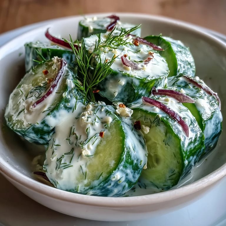 Pin It Experience the crisp, refreshing flavors of summer with this Creamy Cucumber Dill Salad. Bursting with the cool crunch of thinly sliced English cucumbers and the sharp zest of red onion, this salad is elevated by a smooth, tangy dill dressing that perfectly complements any picnic or barbecue. Easy to prepare and naturally gluten-free, it’s a light side dish that everyone will love.