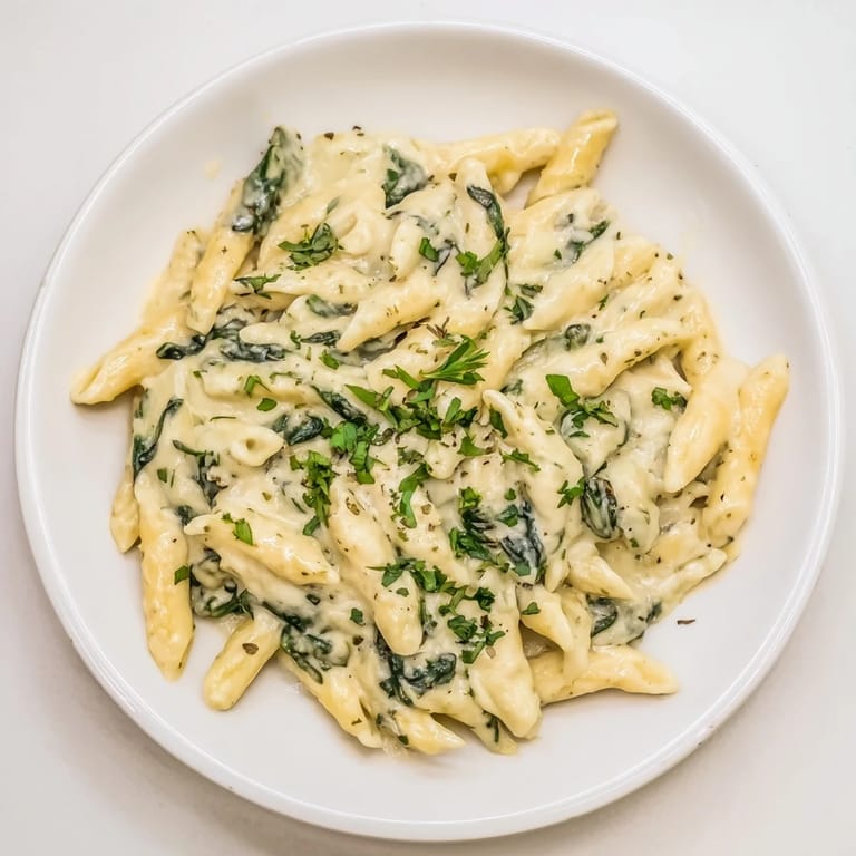 Pin It A comforting and flavorful one-pot casserole featuring tender pasta, fresh spinach, and a creamy cheese sauce. Perfect for busy weeknights and sure to please the whole family.