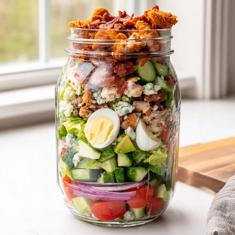 When properly layered with dressing on the bottom, these jars stay fresh for 3-4 days. The key is keeping the lettuce away from the dressing until you're ready to eat. Add avocado just before serving to prevent browning.