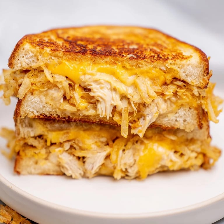 Pin It My neighbor brought over a container of crispy fried shallots one autumn afternoon, insisting I needed to use them in a grilled cheese. I was skeptical at first, honestly, but something about the combination clicked immediately when I built my first sandwich. That buttery crust giving way to melted cheese, warm chicken, and those shallots adding an unexpected crunch changed how I think about lunch.