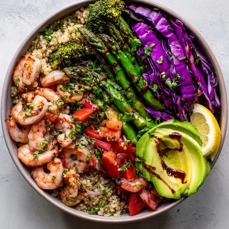 Pin It Last January, after weeks of holiday indulgence left me feeling sluggish, I craved something vibrant but genuinely satisfying. This bowl emerged from that need. The combination of sweet shrimp, earthy quinoa, and that sharp balsamic kick woke up my palate in ways sad salads never could. Now it is my go-to when I want to eat clean without feeling deprived.