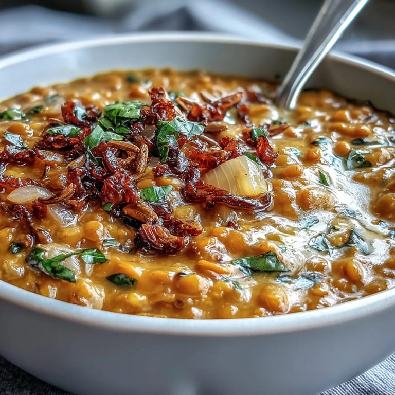 Pin It My neighbor brought a thermos of dhal to my door on a gray November afternoon, steam rising from the lid as she explained it was her grandmother's recipe, simplified for weeknight cooking. That first spoonful—earthy lentils brightened by lemon, the warmth of ginger sitting on my tongue—made me understand why she'd driven across town to share it. I've since made it dozens of times, each batch a little different depending on what's in my spice cabinet or how much heat I'm craving. The roasted cauliflower was my own addition, born from a Sunday when I had leftover florets and wanted something golden alongside the creamy dhal.