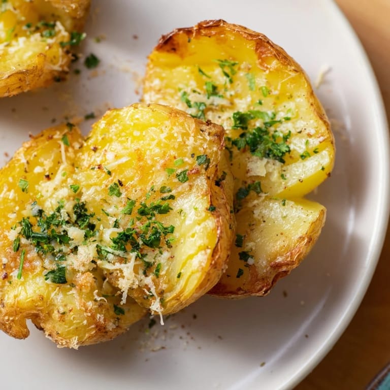 Pin It I discovered these potatoes completely by accident during a weeknight scramble to feed unexpected guests. While rummaging through the fridge for something impressive, I realized I had baby potatoes, butter, and a block of Parmesan staring back at me. What started as improvisation turned into the kind of side dish that steals the spotlight—crispy edges that shatter between your teeth, creamy centers, and enough garlic and cheese to make everyone ask for the recipe before dessert even hits the table.