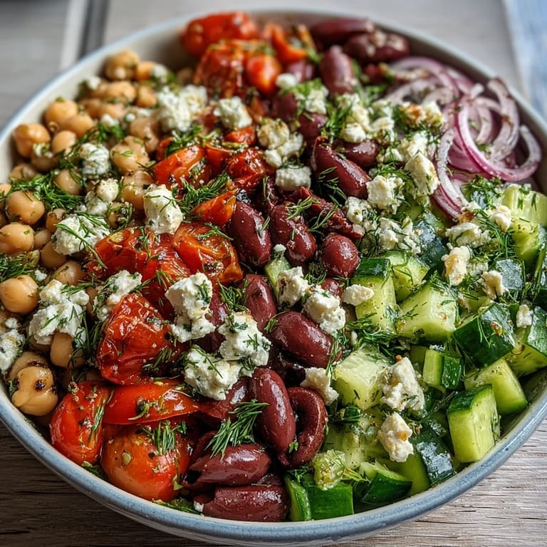 Pin It I threw this together on a Tuesday night when my fridge was half-empty and I needed something bright to shake off the winter blues. Three cans of beans, a lemon I'd almost forgotten about, and some feta that had been waiting patiently in the back. I didn't expect much, but that first bite—tangy, crunchy, salty—woke up my whole kitchen. Now it's the salad I make when I want to feel like I'm eating lunch on a sunny Greek island, even if it's raining outside.