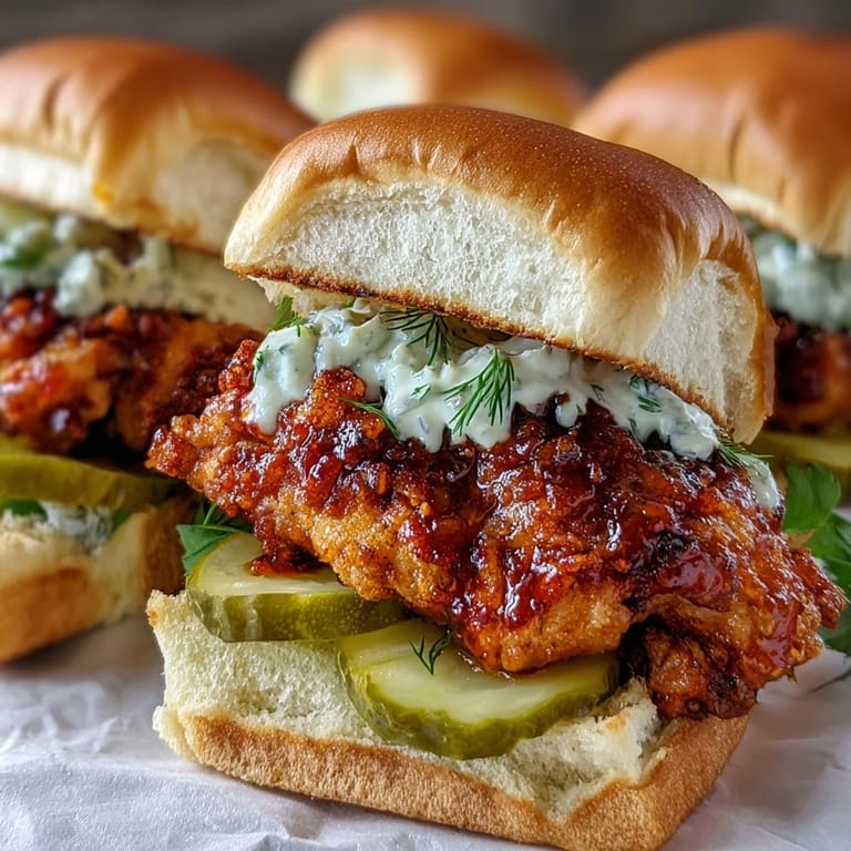 Pin It The kitchen was already chaos when my brother announced he was bringing six friends over for the game. I had chicken thighs thawing and zero plan, but sometimes that desperate energy sparks the best ideas. These sliders came together in a fever dream of buttermilk and cayenne, and honestly, they've stolen the show at every gathering since. Something about that heat cutting through the cool aioli just makes people stop mid-conversation and ask for the recipe.