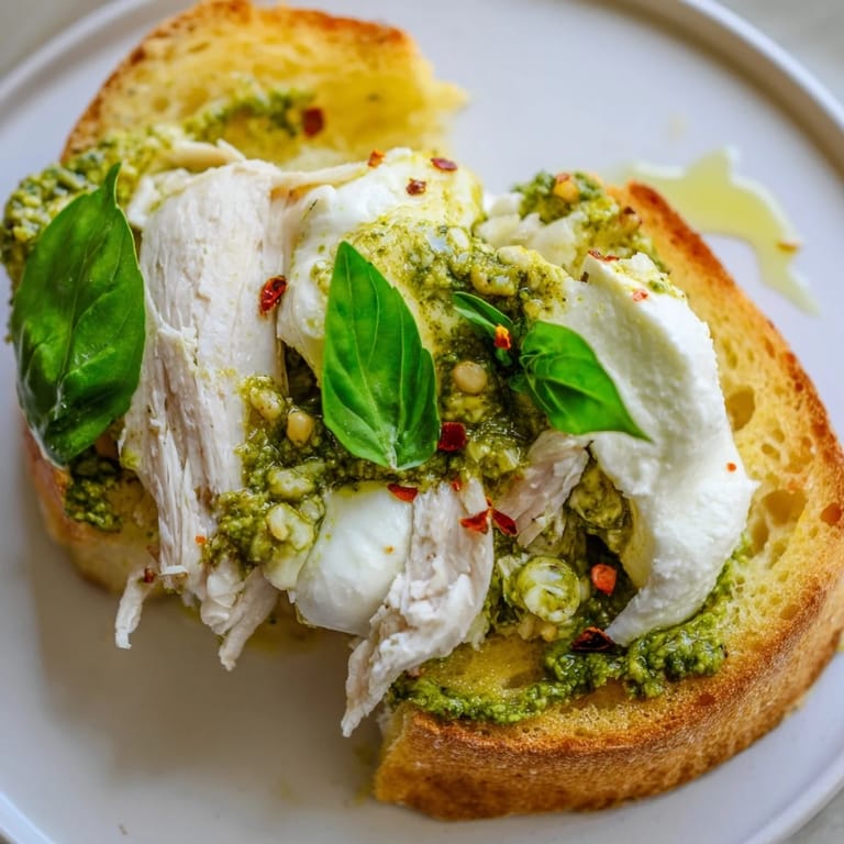 Pin It The first time I made this toast was on a Tuesday evening when I wanted something restaurant-quality but needed to use up a sourdough loaf and leftover chicken from the night before. My kitchen filled with the aroma of toasting bread and savory pesto, and suddenly dinner felt like an occasion. I tore the burrata with my hands instead of slicing it, watching the cream spill over the warm chicken. Now it is my go-to when I crave something that looks impressive but comes together in under half an hour.