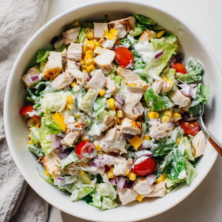 Pin It The crunch of fresh lettuce against the spoon, the cool creaminess hitting your tongue first, then that sudden pop of sweet corn and sharp cheddar. My sister-in-law brought a version of this to our summer barbecue last year, and I honest to goodness couldn't stop eating it. Something about how the Greek yogurt ranch clings to every single tiny diced piece makes it feel substantial, not like those sad watery salads that leave you hungry an hour later. Now it's the only salad my teenage son will actually request by name.