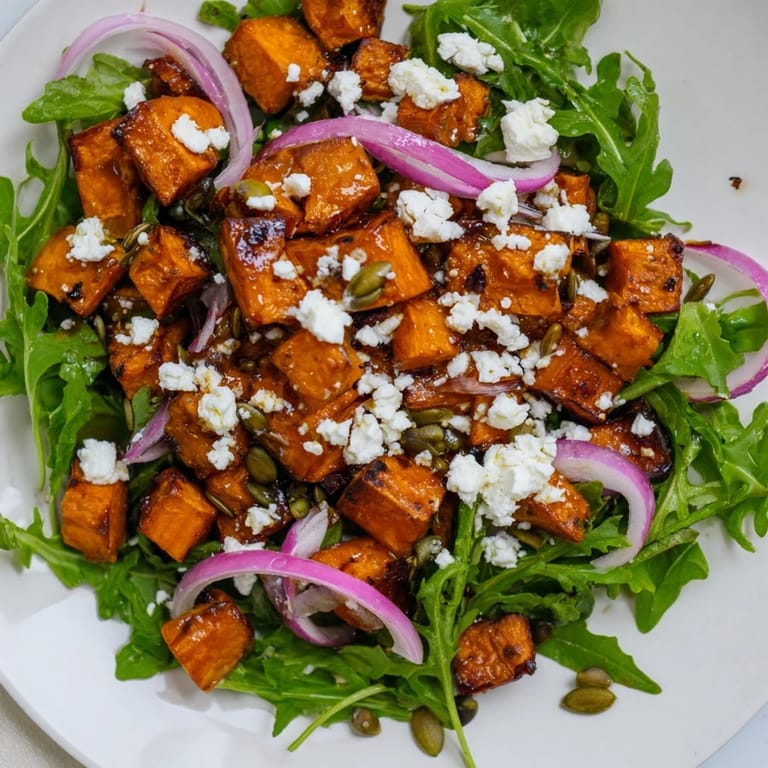 Pin It My neighbor once brought over a bowl of this salad after I mentioned I was tired of the same lunch rotation. The sweet potatoes were still warm, their edges crispy and caramelized, and the arugula had just enough bite to balance the sweetness. I ate it standing at the counter, fork in hand, and immediately asked for the recipe. Since then, it's become my go-to whenever I need something that feels both nourishing and a little special.