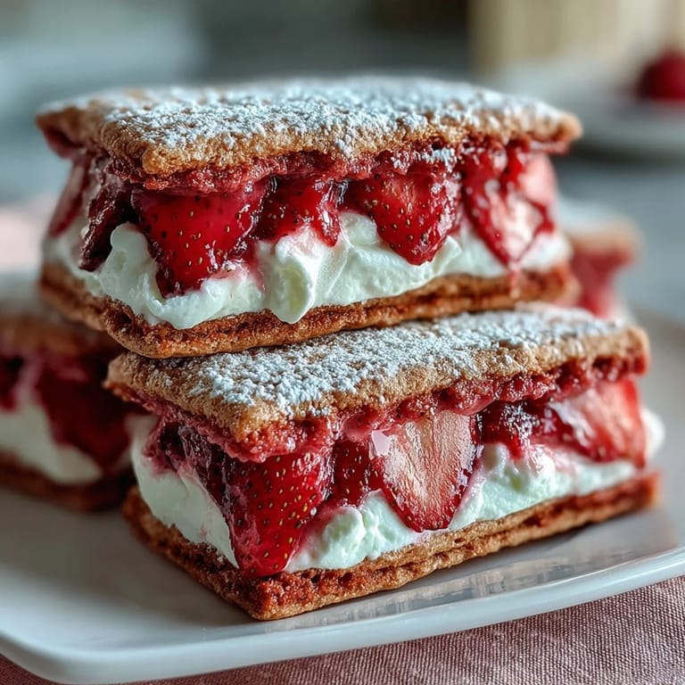 Pin It My neighbor brought over a box of fancy strawberry shortcake cookies last summer, and I watched her bite into one with this satisfied smile—cream filling squishing out the sides, fresh berries tumbling onto her plate. That moment made me wonder if I could capture that same magic at home, in cookie form instead of the traditional fluffy cake. Turns out, you absolutely can, and the results are even better because you get crispy, tender edges with every single bite. These little sandwiches became my answer to "what do I bring to a picnic" for the next three seasons.
